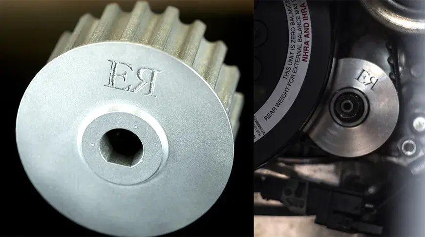 A English Racing tinha uma teoria de que produzir um novo equipamento sob polia com um diâmetro maior tornaria a pressão do óleo mais lenta e, portanto, diminuiria a pressão. Mas produzi-lo foi um enorme desafio: a polia original era uma peça fundida, que normalmente exigiria um molde, ferramentas para produzir um molde, uma quantidade significativa de tempo de entrega e um valor financeiro proibitivo.